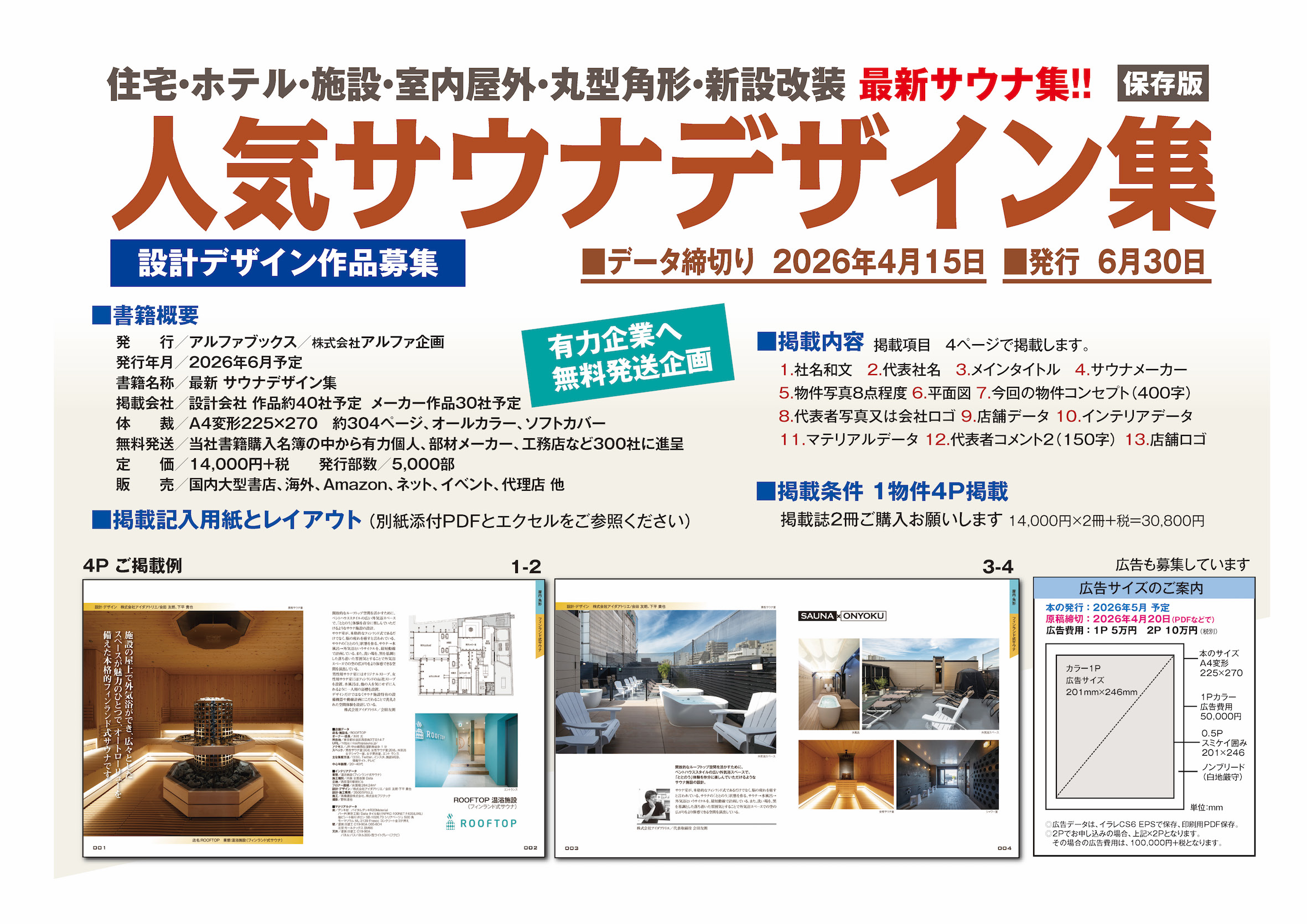 この度、「最新サウナデザイン」の本を発行する事になりました。