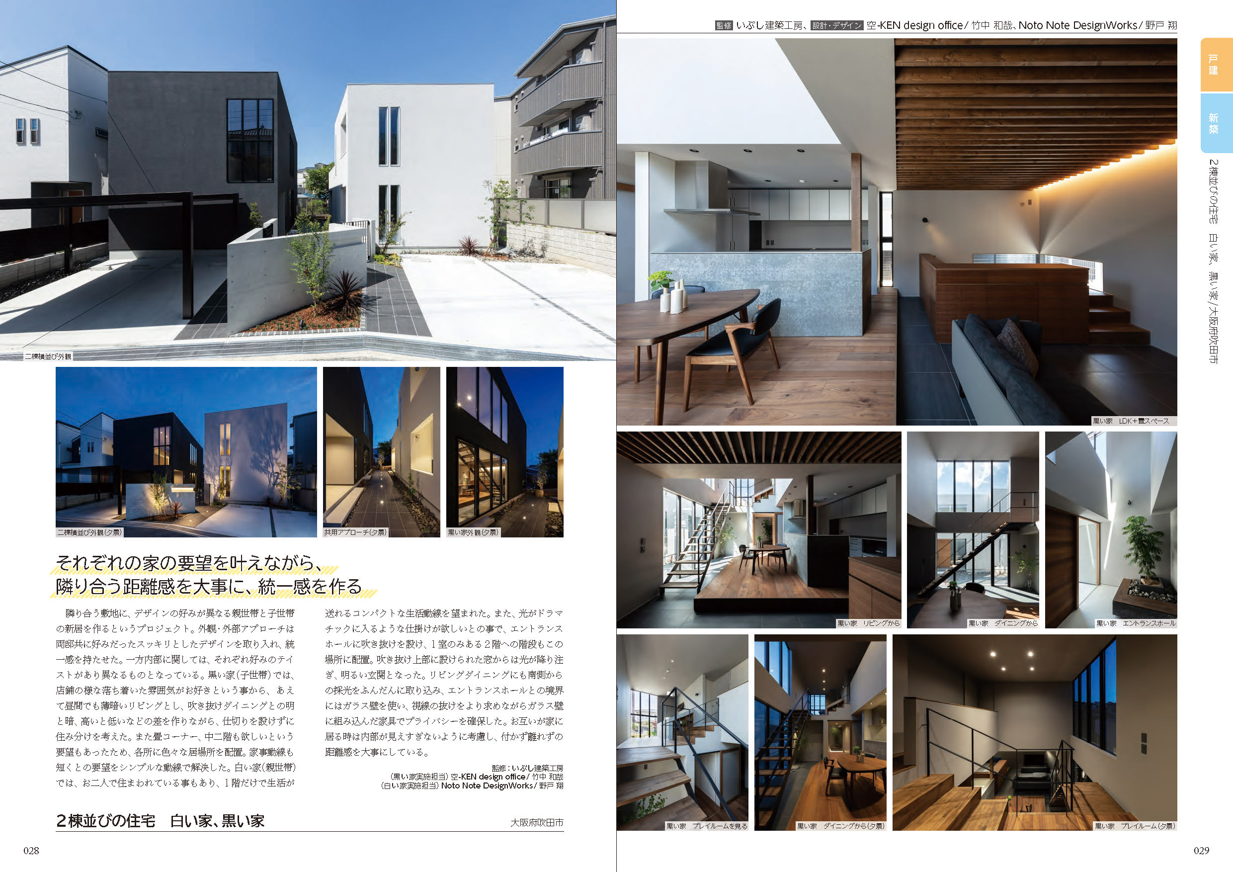 2棟並びの住宅 白い家、黒い家